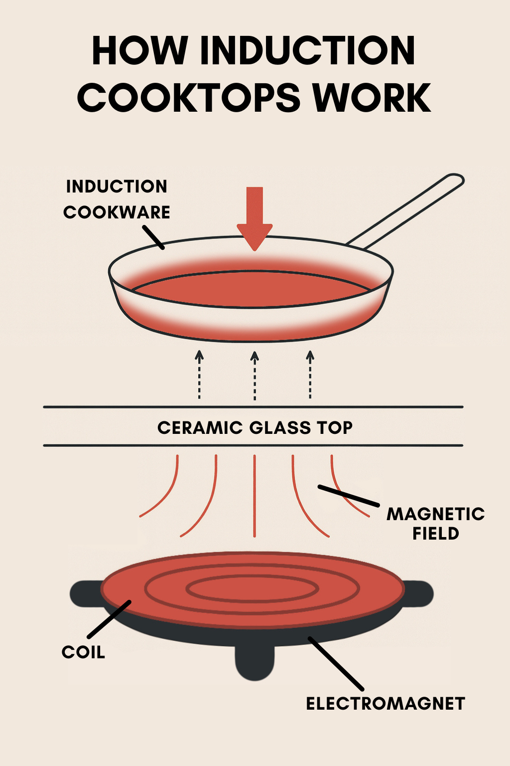 Beneath the smooth glass surface of an induction cooktop lies a coil of copper. When you switch the burner on, this coil generates a magnetic field. If a pot or pan made from a magnetic material (such as cast iron or induction-ready stainless steel) is placed on the cooktop, the magnetic field induces tiny electrical currents within the metal. These currents cause the cookware to heat up rapidly.